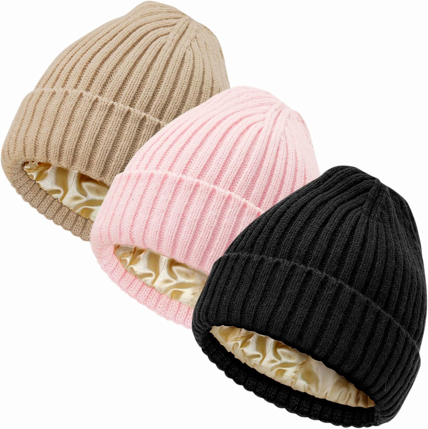 Satin Lined Beanies Hat for Women Men Warm Winter Knit Beanie Hat Soft Slouchy Cuffed Skull Cap for Cold Weather