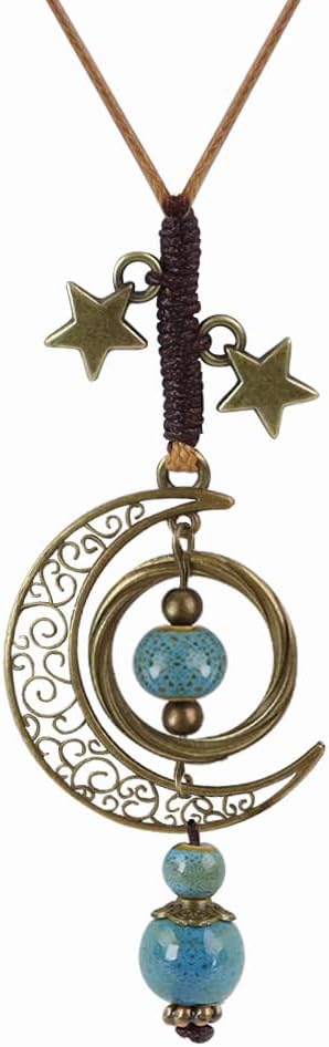 Bohemian Pendant Necklace Vintage Crescent Moon Statement Necklace Boho Ceramic Bead Pendant Adjustable Length for Women