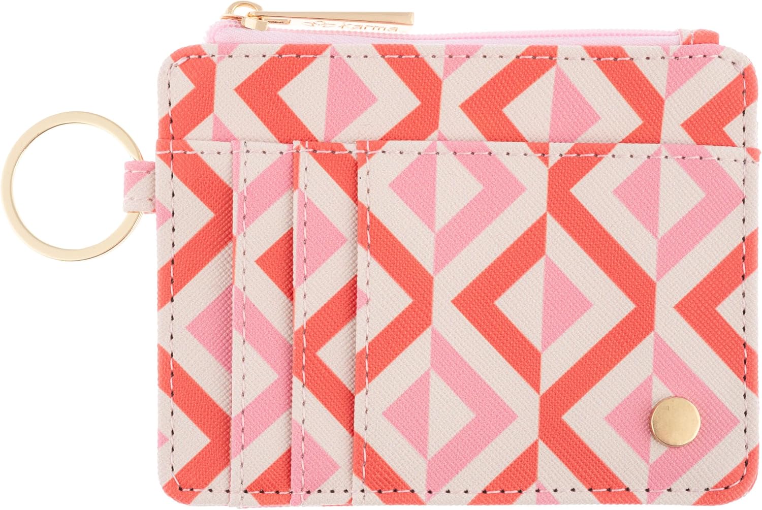 Karma, Womens Card ID Wallet, Small Leather Wallet Coin Purse with Keychain, Slim ID Card Case Holder, Geo Diamond