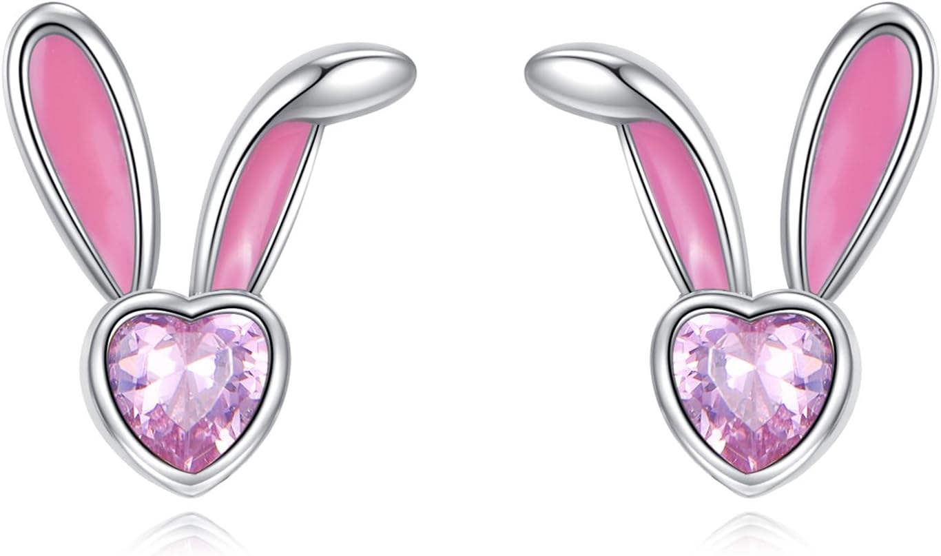 Rabbit Stud Earrings 925 Sterling Silver Cute Pink Bunny Hypoallergenic Earrings Jewelry Gift for Women