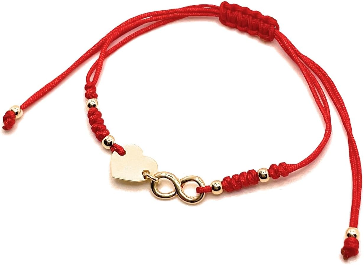 Handmade Red String Bracelet with Gold Heart and Infinity Charm, Adjustable Friendship Bracelet, Love and Forever Symbol Jewelry