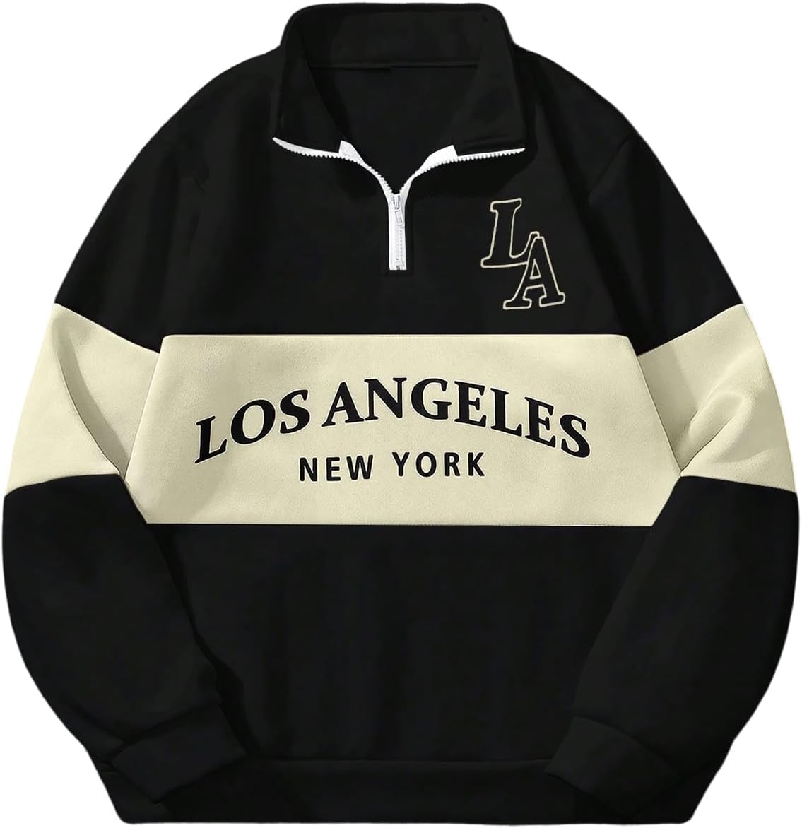 SHENHE Men's Quarter Zip Pullover Color Block Graphic Vintage Preppy Sweatshirt Fall Clothes