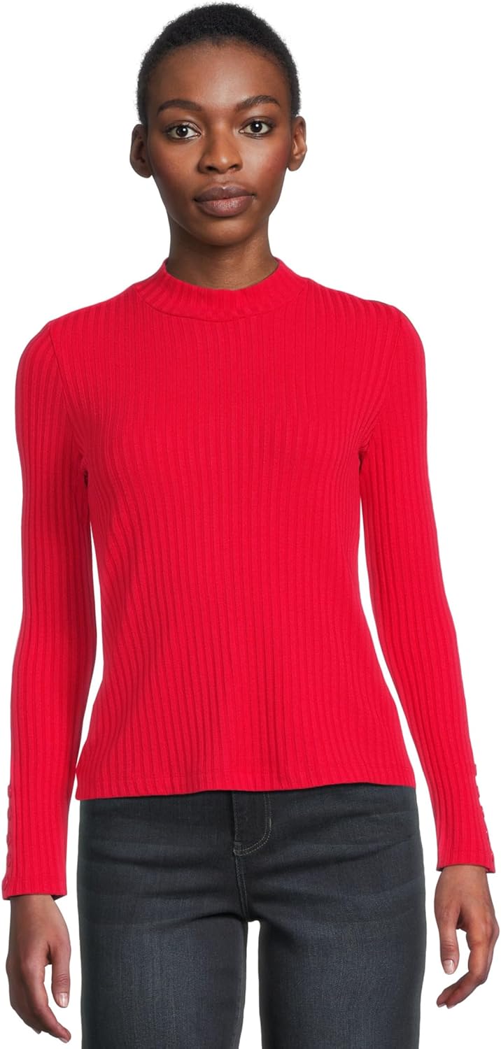 Liverpool Womens Long Sleeve Mock Neck Knit Top with Button Detail