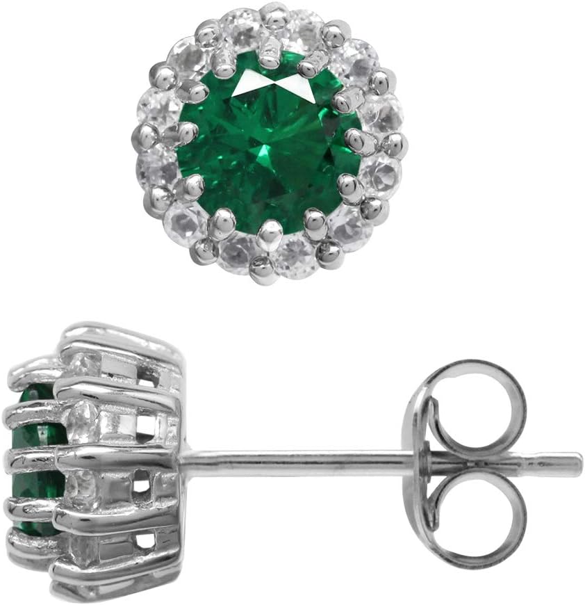 Silvershake 5MM Round Shape Gemstone White Gold Plated 925 Sterling Silver Flower Cluster Halo Stud Post Earrings Jewelry for Women