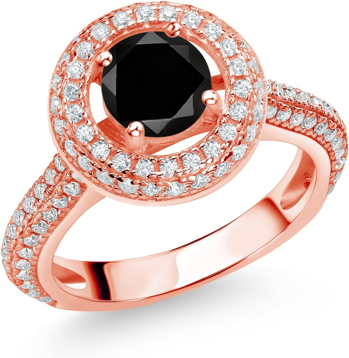 Gem Stone King 18K Rose Gold Plated Silver 6MM Round Gemstone Birthstone and White Moissanite Halo Engagement Ring | Wedding Anniversary Promise Ring For Women | Available In Size 5, 6, 7, 8, 9