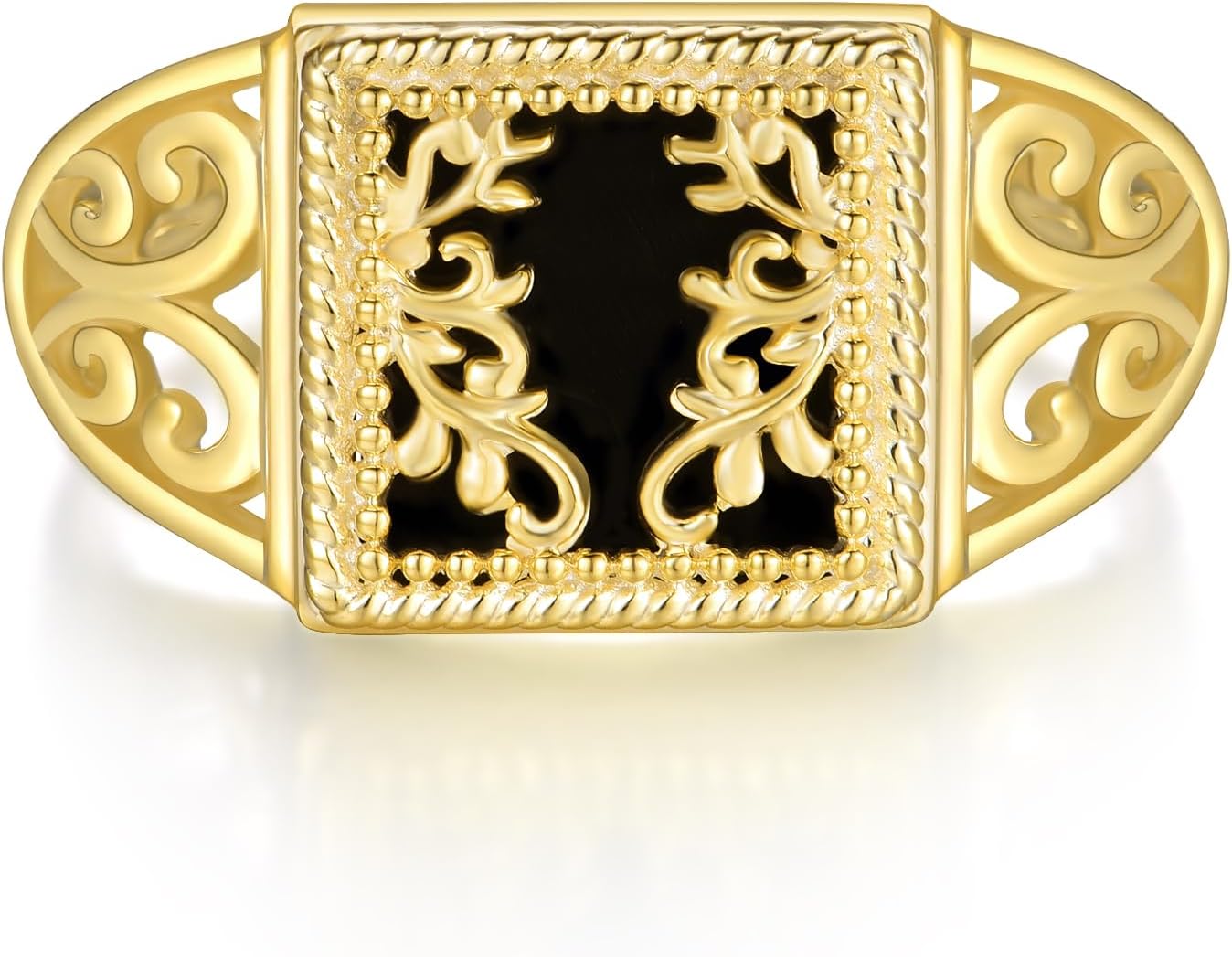 Black Onyx Ring 925 Sterling Silver Black Onyx Rings for Women Gold Plated Filigree Rings for Women Men