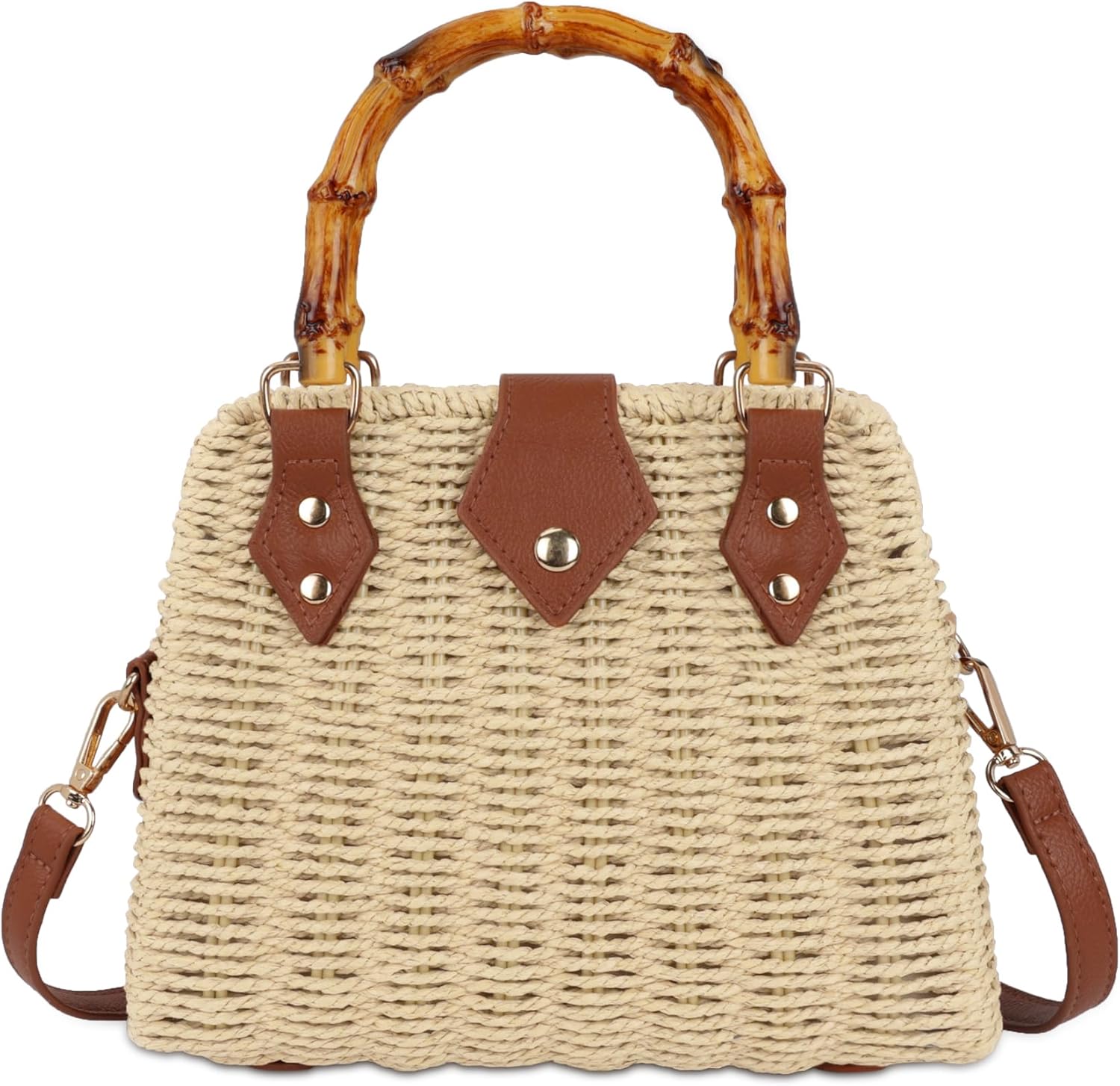 Straw Beach Bag Crossbody Handbag for Women Handmade Woven Shoulder Bag Top Handle Purse for Summer