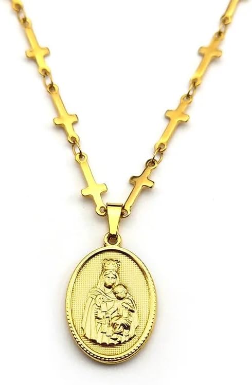 18K Gold Plated Virgin Mary Coin Necklace, 18K Gold Plated Christian Prayer Cross Necklace for Women.