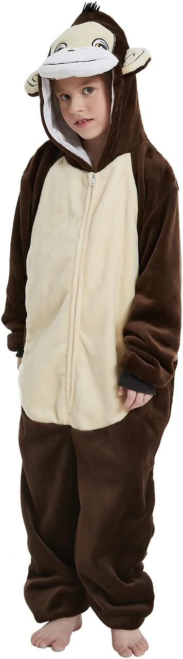 Monkey Onesie Kids Gorilla Costume Animal Girls Pajamas One Piece Plush Sleepwear Cosplay Halloween Christmas