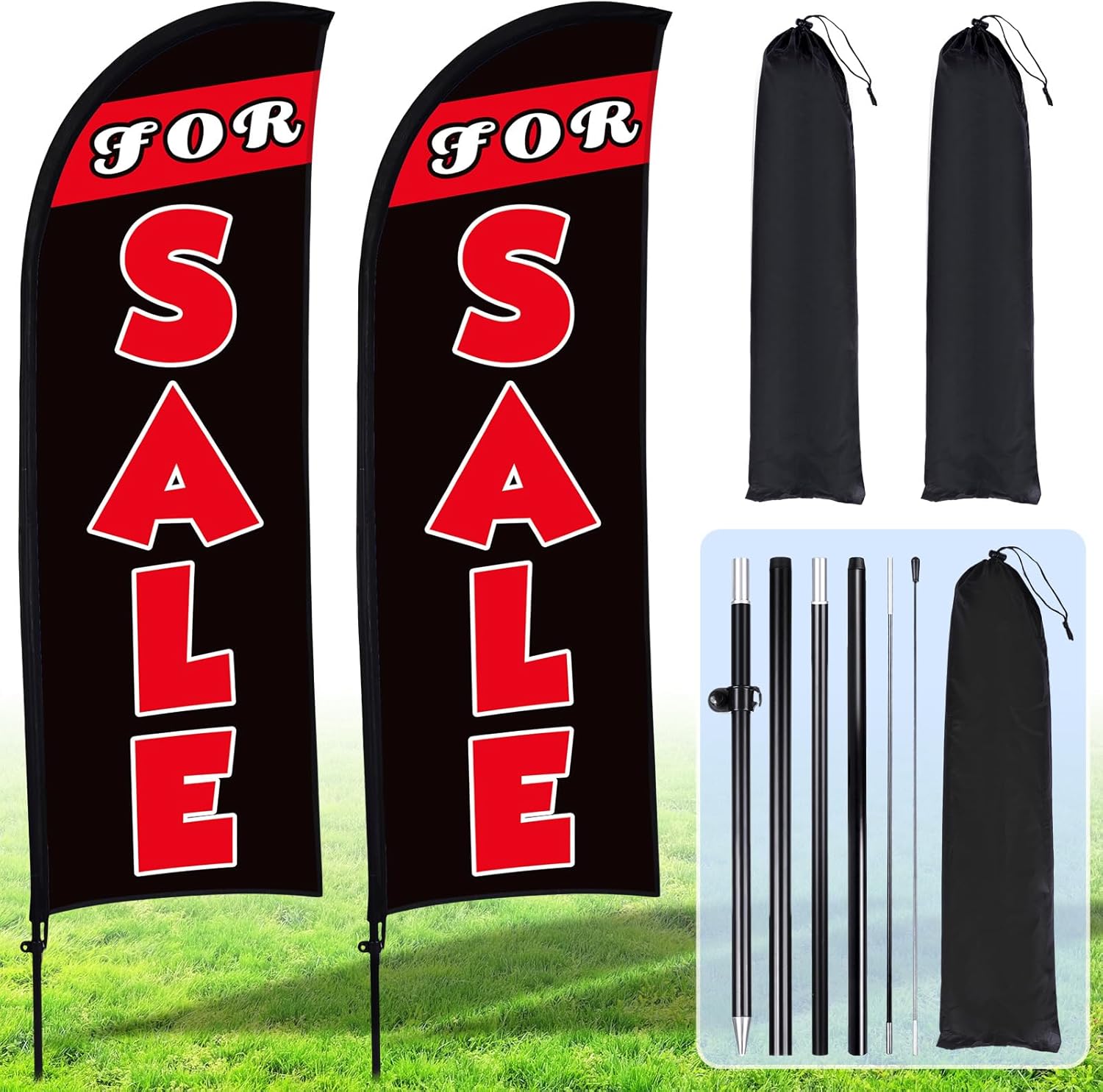 - Sufficient Quantity: you will receive 2 set feather flag 7 FT x 5.4 FT / 210 x 165 cm, 12 pieces of poles of different thicknesses and 2 drawstring bag for easy storage, you can set up 2 sets of advertising feather flags, sufficient quantity to meet your usage needs, the appropriate length makes your store more visible