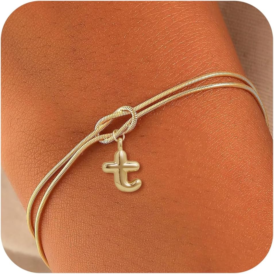 Gold Initial Bracelets for Women - Friendship Bracelet, 14K Gold Plated Love Knot A-Z Letter Bracelet, Dainty Forever Infinity Bracelet, Bridesmaid Gifts, Valentine's day Gifts for Women, Lover Bridesmaids Friends Gifts