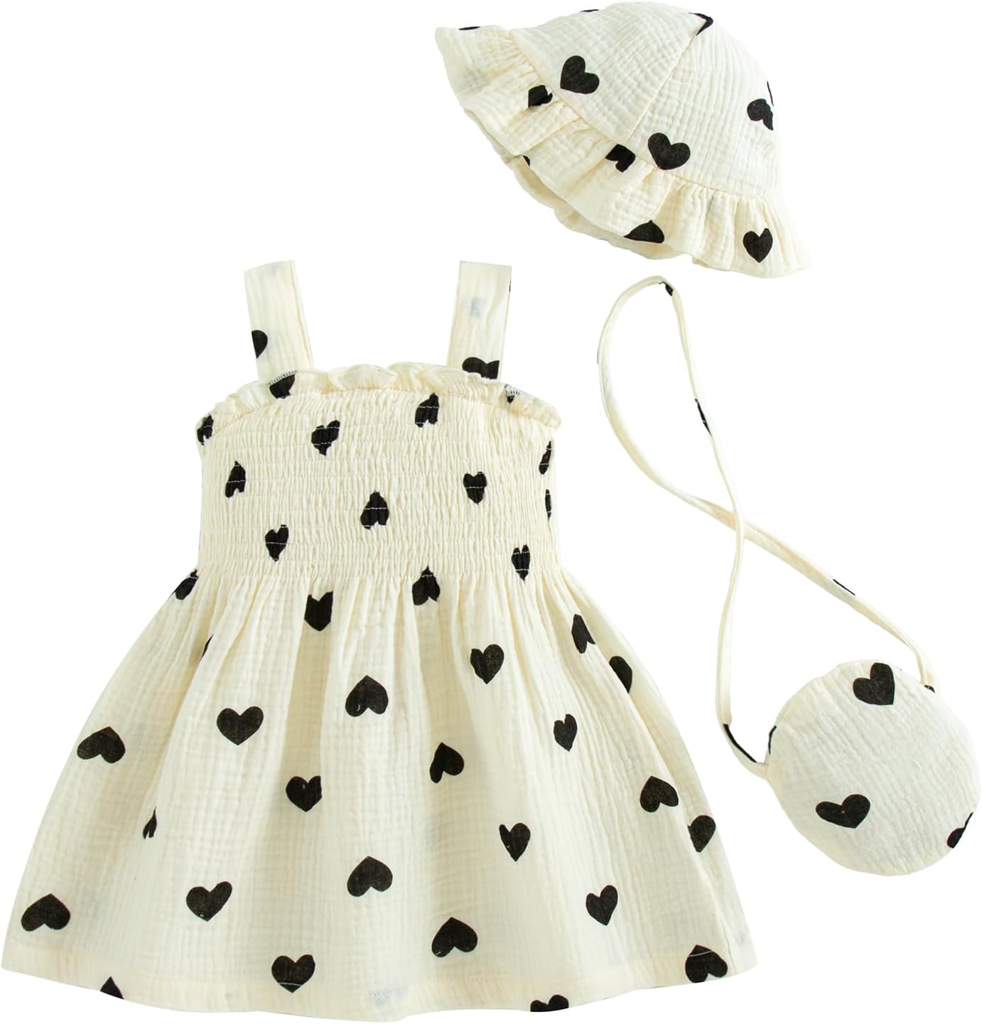 Renotemy Baby Girl Dress Toddler Girl Clothes Summer Outfits Gifts Cotton Sundress Infant Dresses for Girls with Hat and Bag