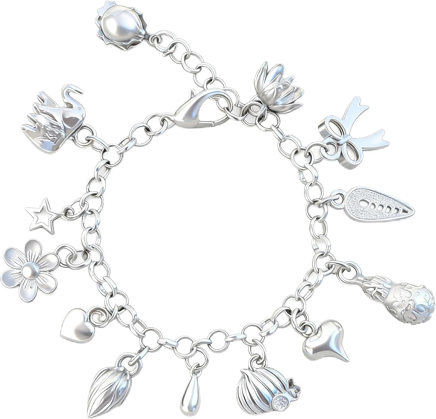 Charm Bracelet for Women Sterling Silver - Adjustable Dainty Layered Bracelets with 13 Charms, Silver Jewelry Gift for Women