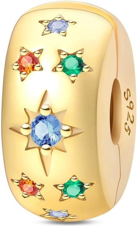 925 Sterling Silver Gold Charms for Pandora Bracelets and Necklaces Clip Stopper Bead for Women Spacers Jewelry Gifts