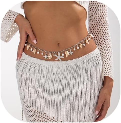 Sexy Pearl Waist Chain Belt Summer Big Starfish Body Chain Simple Shell Conch Tassel Belly Link Chain Jewelry for Women