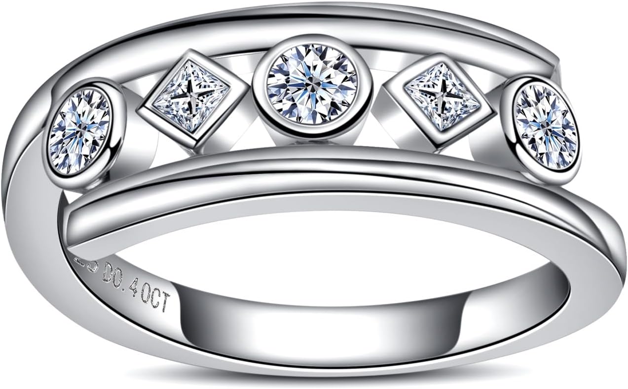 Moissanite Wedding Bands Engagement Rings D Color VVS1 Clarity 925 Sterling Silver 5 Stones Eternity Anniversary Band Moissanite Statement Wedding Ring for Women Men with Certificate