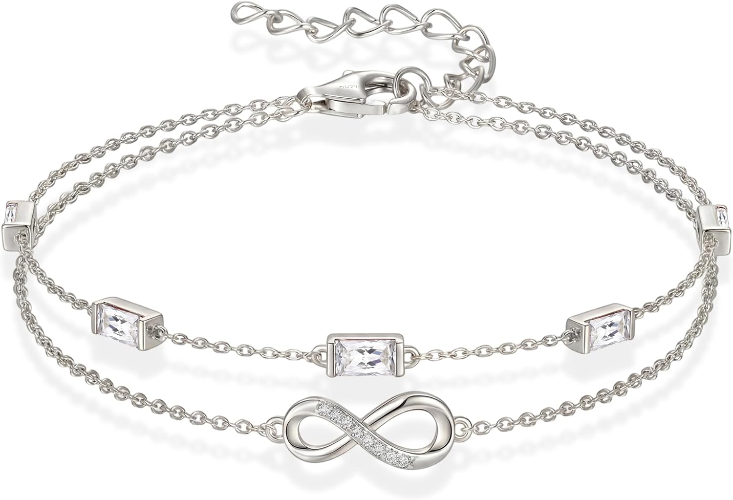 Valentine's Day Gift Infinity Love Women Bracelet Birthstone Charm Link Bracelet for Women 925 Sterling Silver Birthstone Bracelets for Women, 18K-Gold-Plated 925 Sterling Silver Dainty Simple Charm Link Bracelet