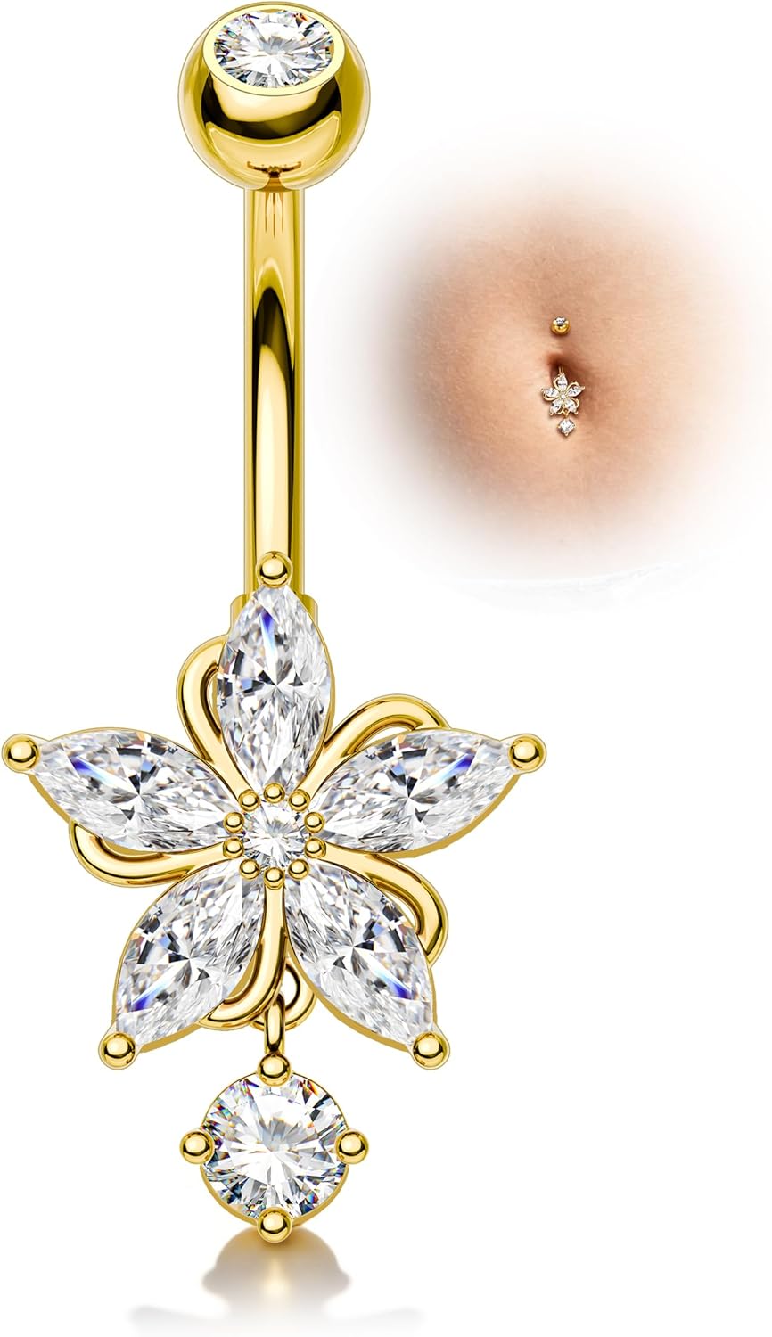 Twined Bloom Belly Button Rings 14G Dangle Navel Rings for Women Stainless Steel Belly Button Piercing
