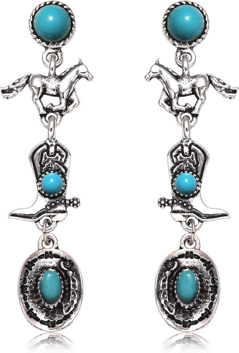 Western Earrings for Women Retro Sliver Cowboy Boot Horse Hat Turquoise Drop Dangle Earrings Nashville Rodeo Accessories West Country Party Jewelry Gift