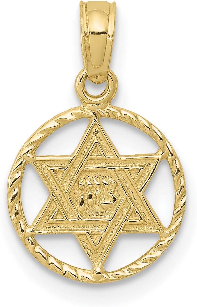 10k Yellow Gold Star of David Pendant with Hebrew Chai Symbol, Unisex Jewish Faith Necklace for Daily Wear, Spiritual Judaica Jewelry, Religious Gold Charm for Men and Women, Identity Symbol