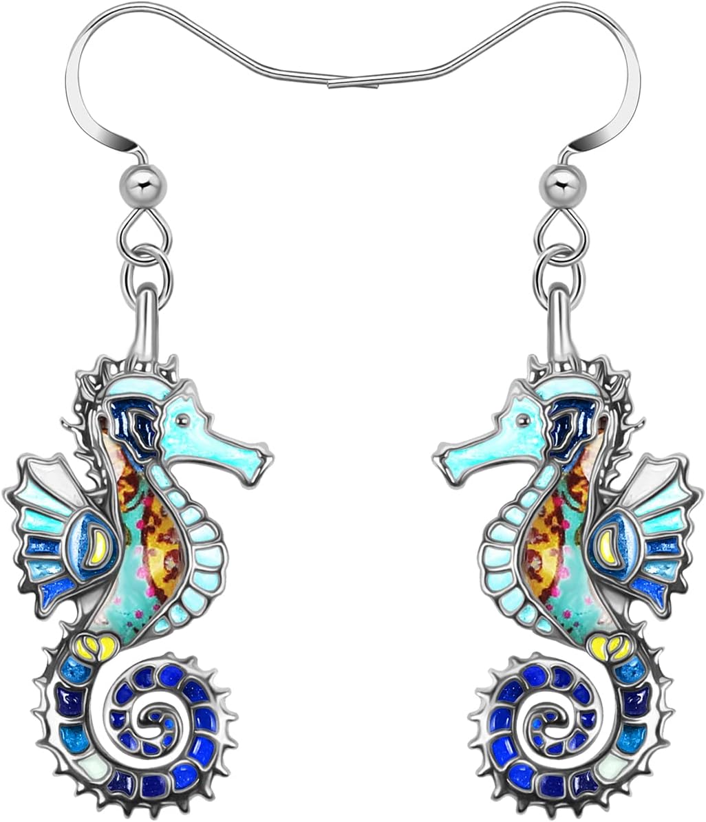 Enamel Alloy Cute Seahorse Earrings Dangle Fun Beach Earrings for Women Summer Jewelry Gifts