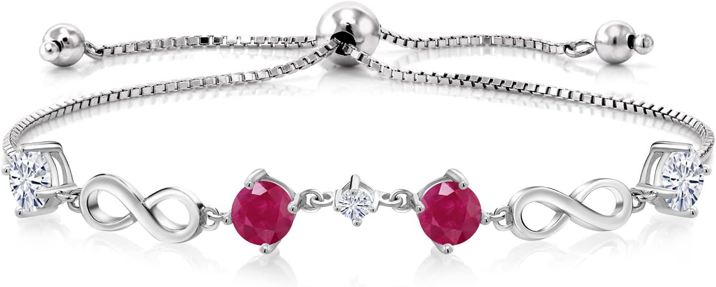 Gem Stone King Keren Hanan 925 Sterling Silver Women Adjustable Infinity Tennis Link Bracelet Round Red Ruby and Moissanite (2.17 Cttw)