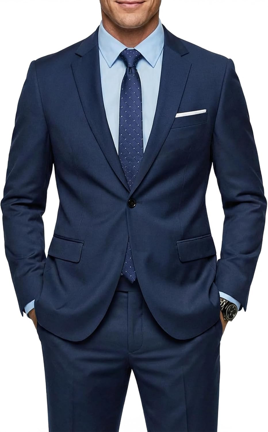 MY'S Men's 2 Piece Slim Fit Suit, One Button Jacket Pants Set with Tie