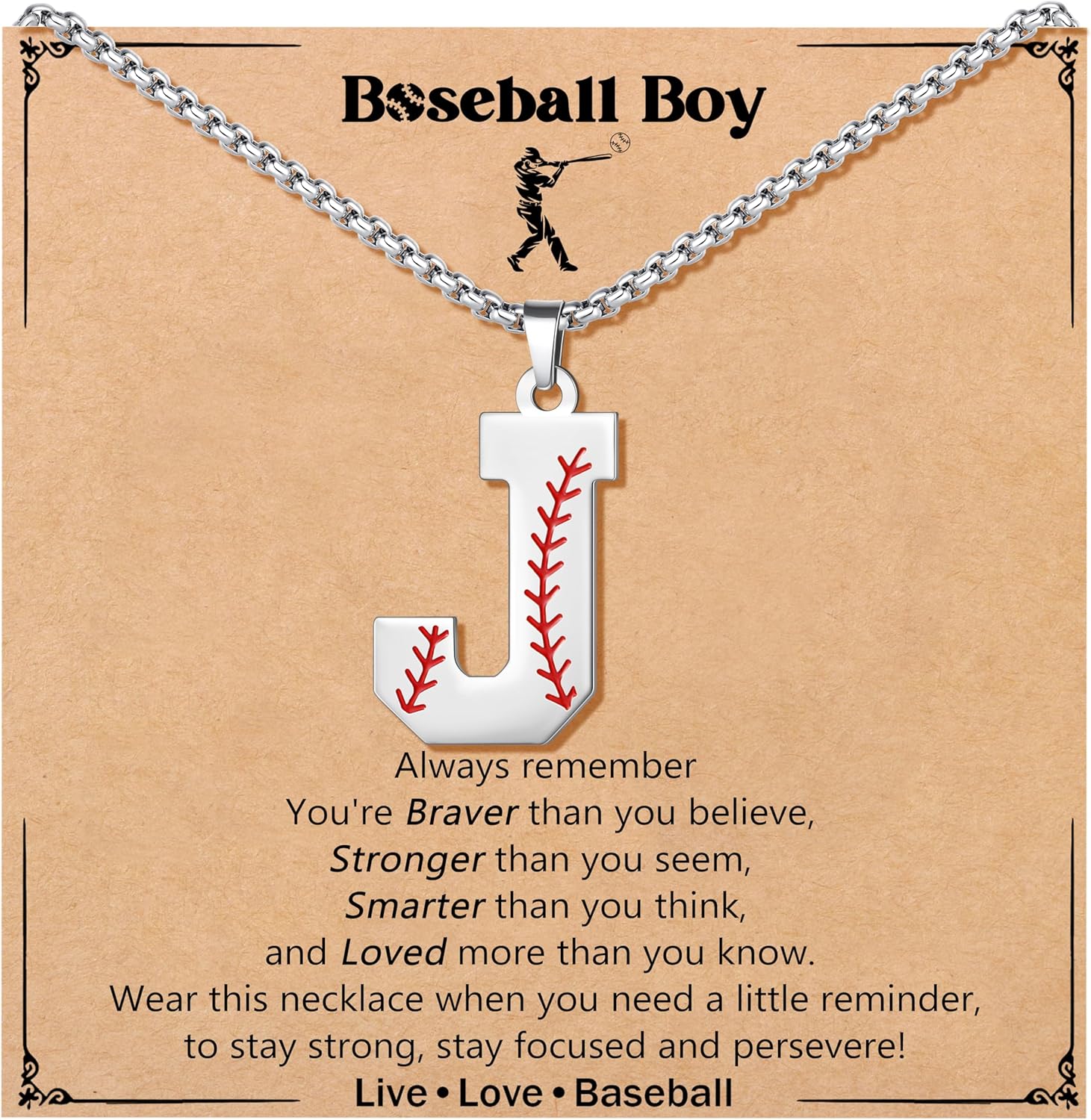 JoycuFF Baseball Gifts for Teenage Initial A-Z Letter Necklace for Son Grandson Players, Birthday Christmas Gifts for His Men