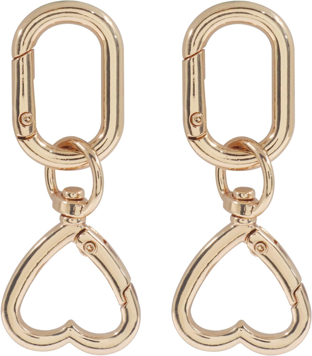 2Pcs Metal Swivel Spring Clasps, Double Opening Swivel Clasp Clips, Heart Key Chain Hook for Craft Making, DIY Crafts (Gold)