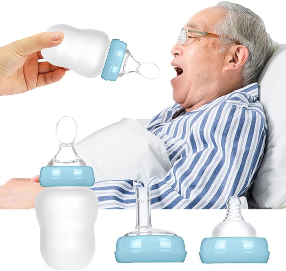 - 【Easy to Use & Clean】Drinking beaker cup is very simple to operate and can be easily used by the user or caregiver,by squeezing the bottle to control the flow rate, one-handed operation. The recovery spoon can easily deliver food to the mouth of the user. Separable design easy to wash.