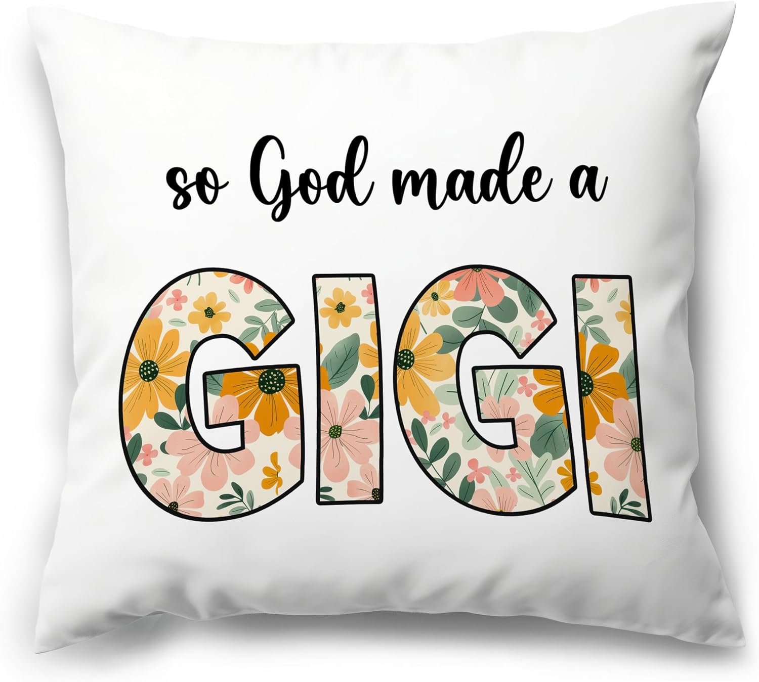 Gigi Grandma Gifts Decorative Throw Pillow Covers, So God Made A Gigi Gifts for Grandma Mother's Day Christmas Birthday, Black Floral Pillow Cases Decor for Bed Couch Bedroom 18x18in