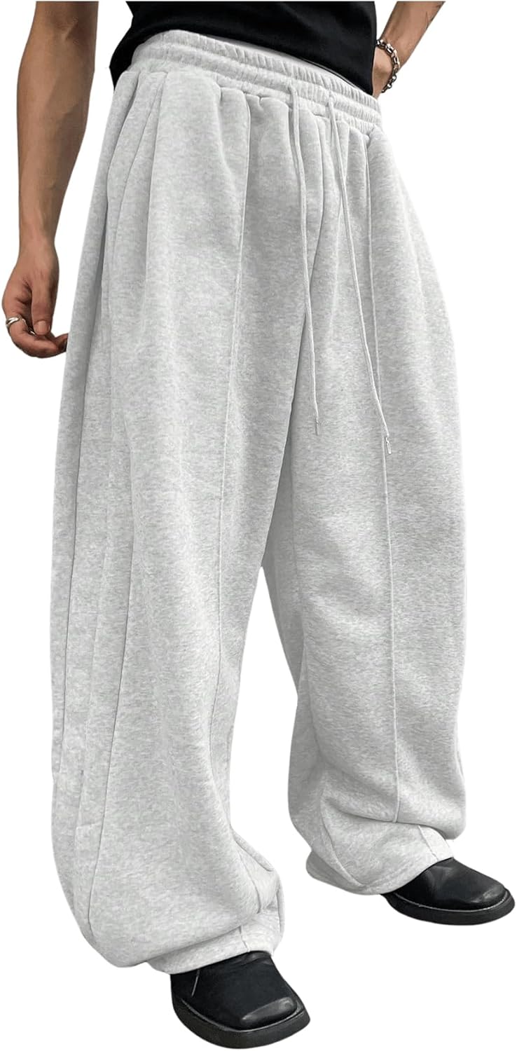 OYOANGLE Men's Baggy Sweatpants Drawstring Elastic Waist Loose Wide Leg Athletic Sweat Pants with Pockets