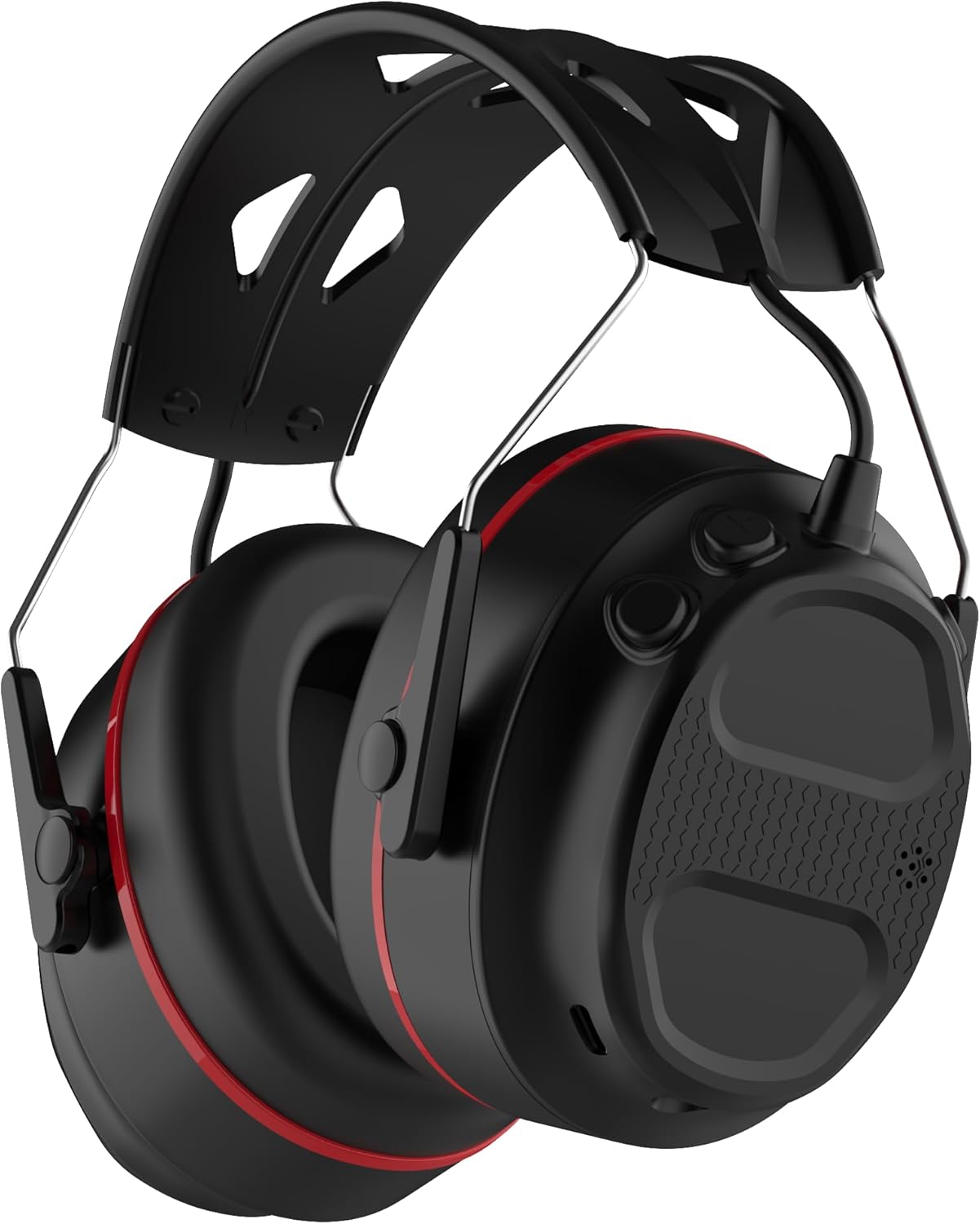 Bluetooth 5.4 Hearing Protection Headphones with 1200mAh Rechargeable Battery, 120H Working Time, 30dB SNR, Ear Muffs with Larger Buttons for Easy Operation, Superior Stereo Sound Quality Black-Red