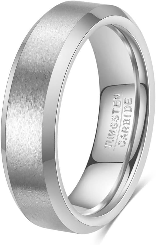 4mm 6mm 8mm Tungsten Carbide Wedding Band Ring For Men Women-Available in Black,Gold and Silver Matte Finish&Polished Beveled Edges Comfort Fit Size 5-12