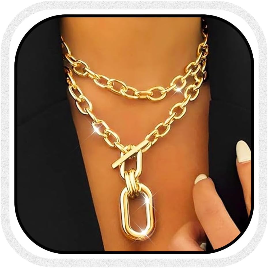 CLOACE Chunky Choker Necklaces Layered Pendant Necklace Chain Punk Thick Necklace Accessories for Women