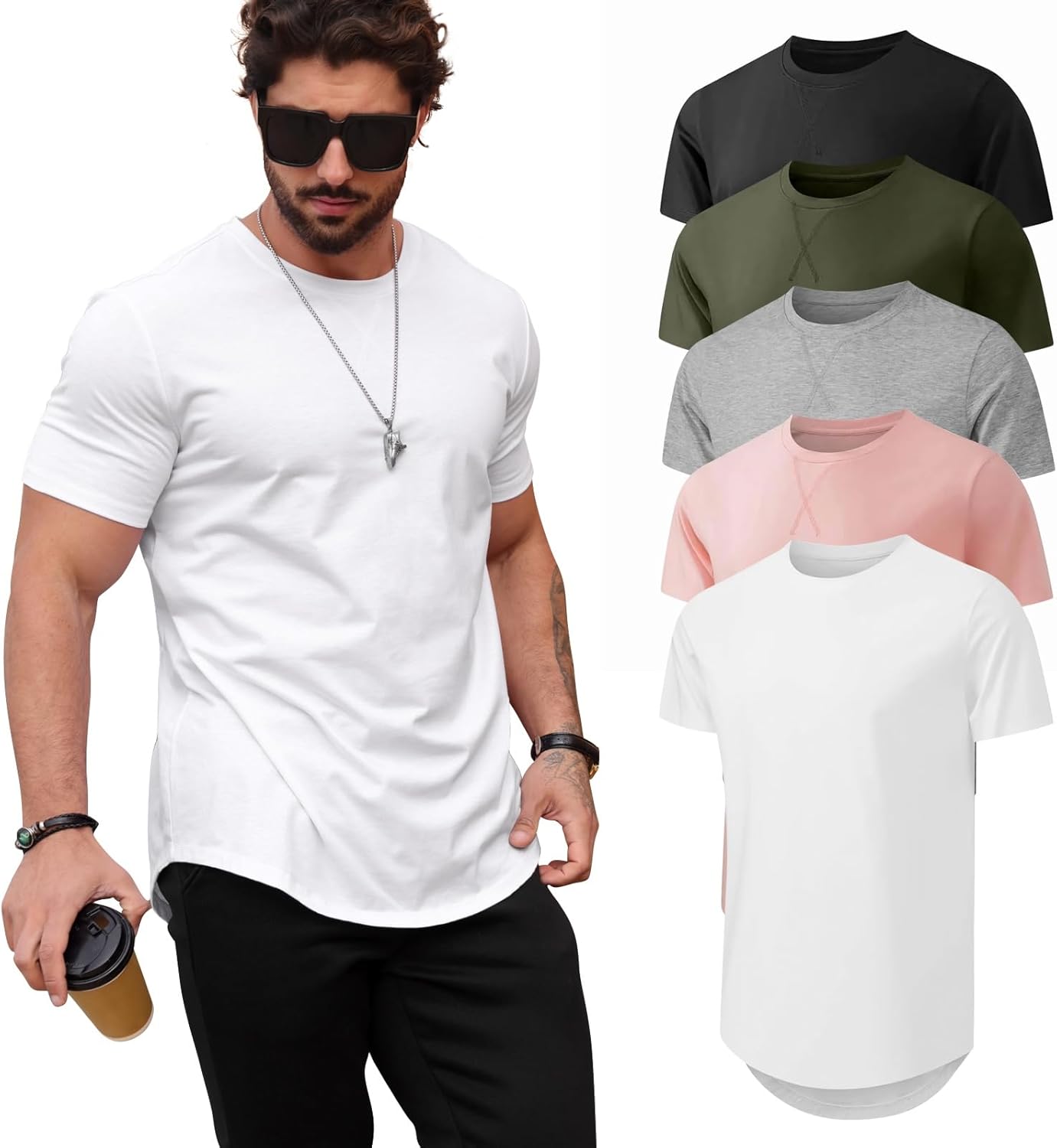Mens T Shirts Casual Hipster Hip Hop Longline Crewneck Tee Shirts