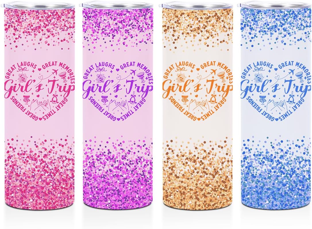 4 PCs Girls Trip 20oz Stainless Steel Tumbler, Girls Trip Gifts Favors Straight Skinny Coffee Mug, Insulated Tumblers Cups Weekend Gifts for Friendship Vacation Bachelorette Party