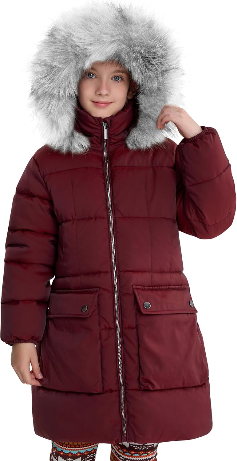 maoo garden Girls Puffer Winter Coat Faux-Down Heavyweight Snow Parka Fuzzy Fur Lining Hood Water-Resistant Long Jacket