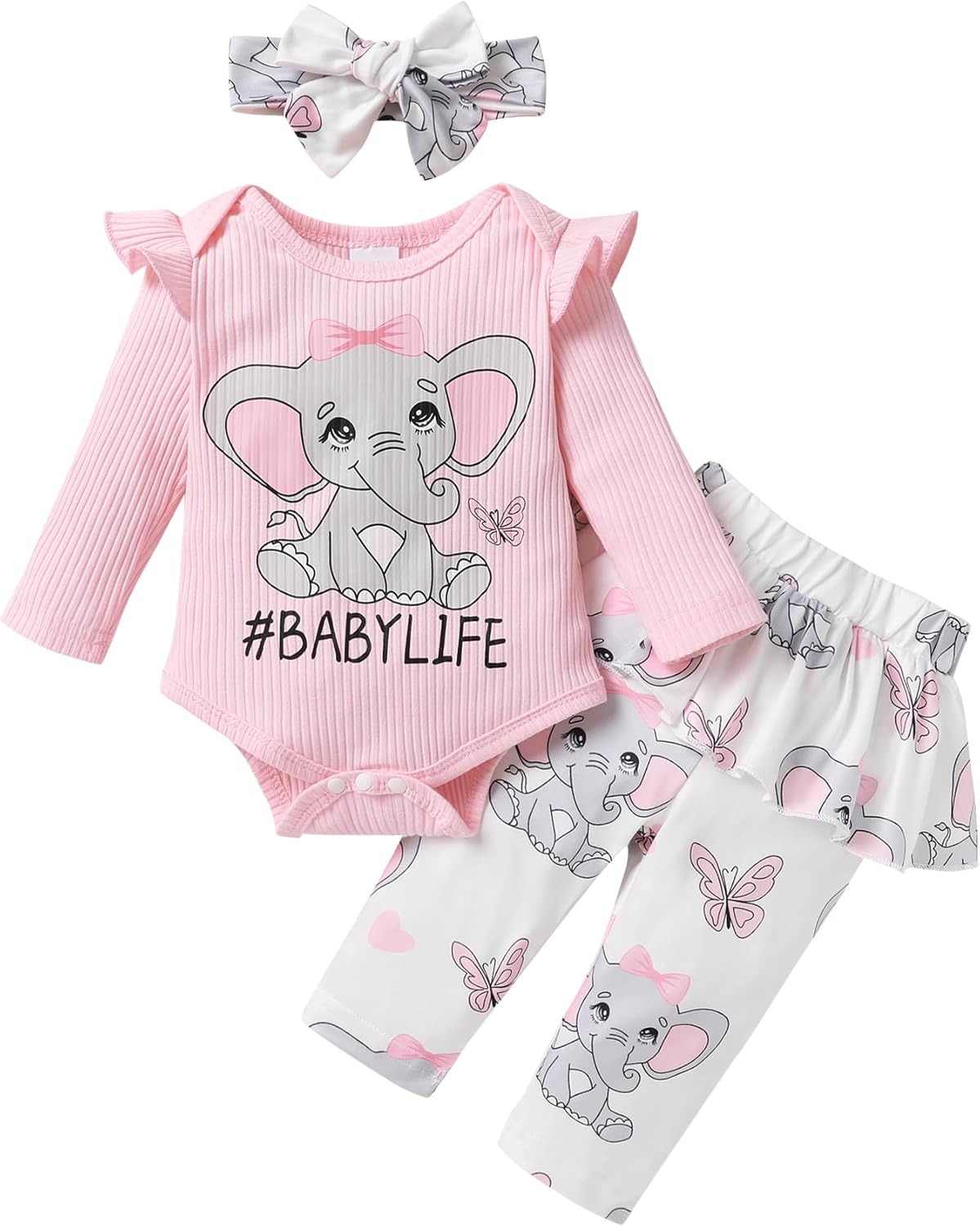 YOUNGER TREE 3PCS Newborn Infant Girls Clothes Baby Girl Fall Outfits Mustard Yellow Romper Baby Clothes Girl Winter Outfits