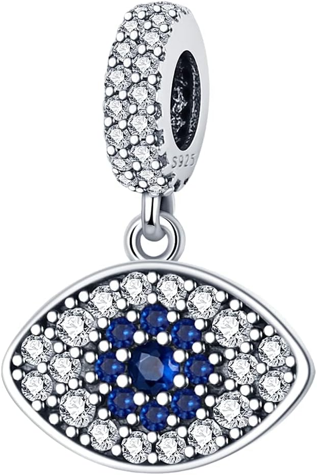 LNQOBU 925 Sterling Silver Charms for Bracelets Necklaces,5A Cubic Zirconias Evil Eye Dangle Beads Charms Jewelry Gift for Women (With one Spacer Beads Charms)