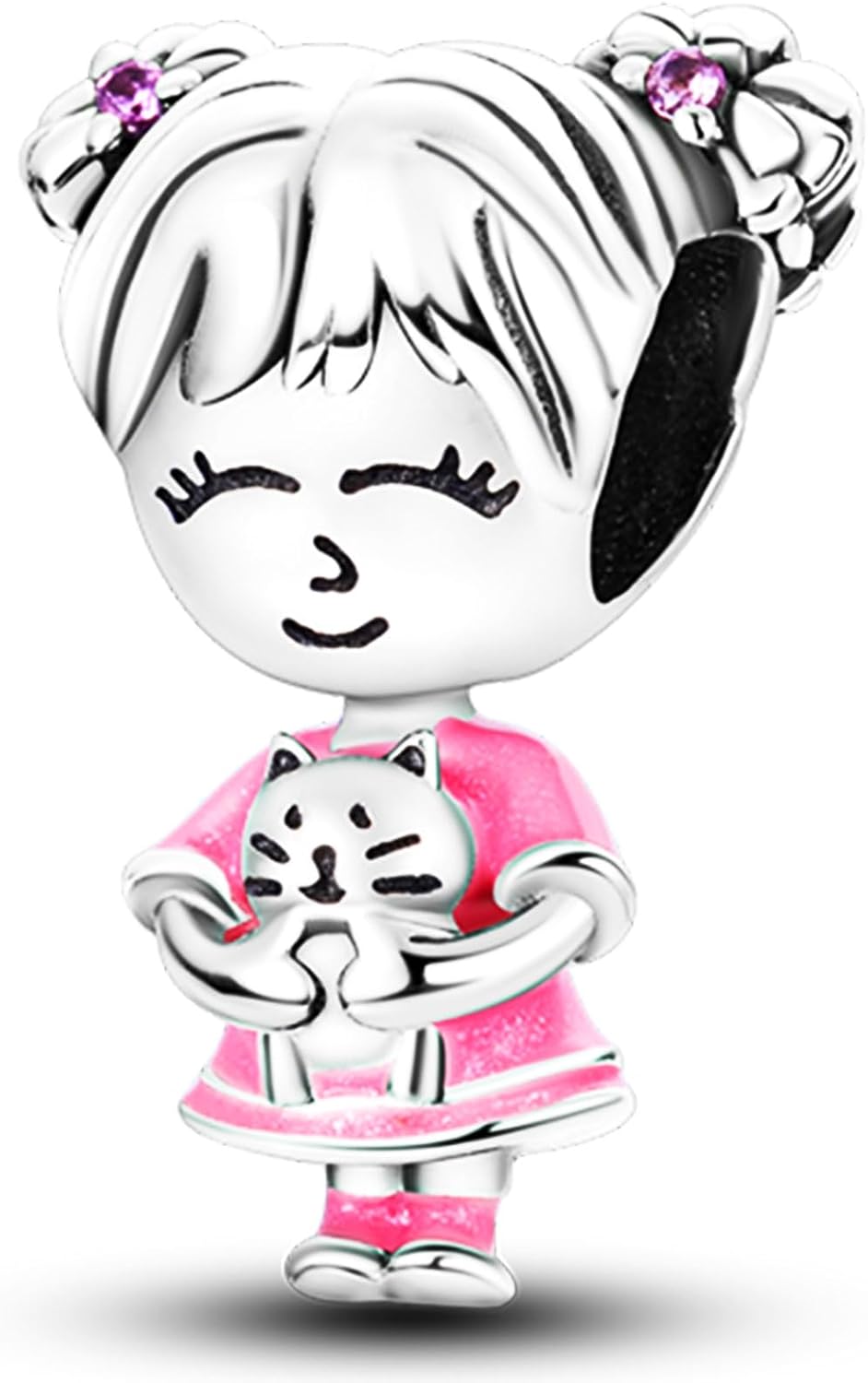 925 Sterling Silver Charms Beads for Bracelets Necklaces, Airplane Passport Sister Heart Coffee Music Book Travel Pendant, Pink Color Cute Animal Jewelry Graduation Birth Gifts for Women Men