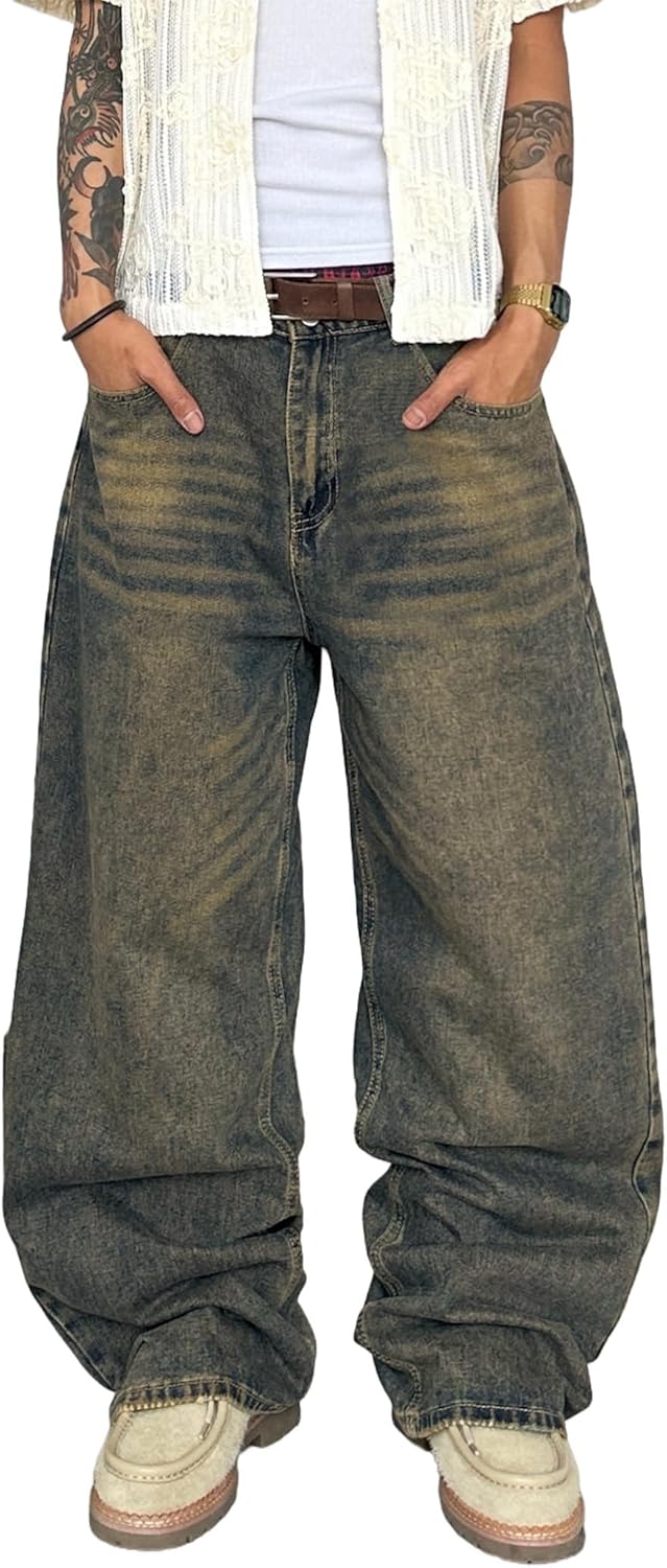 Mens Wide Leg Jeans Super Baggy Pants Y2k Loose Fit Denim Jeans Skater Trousers Streetwear