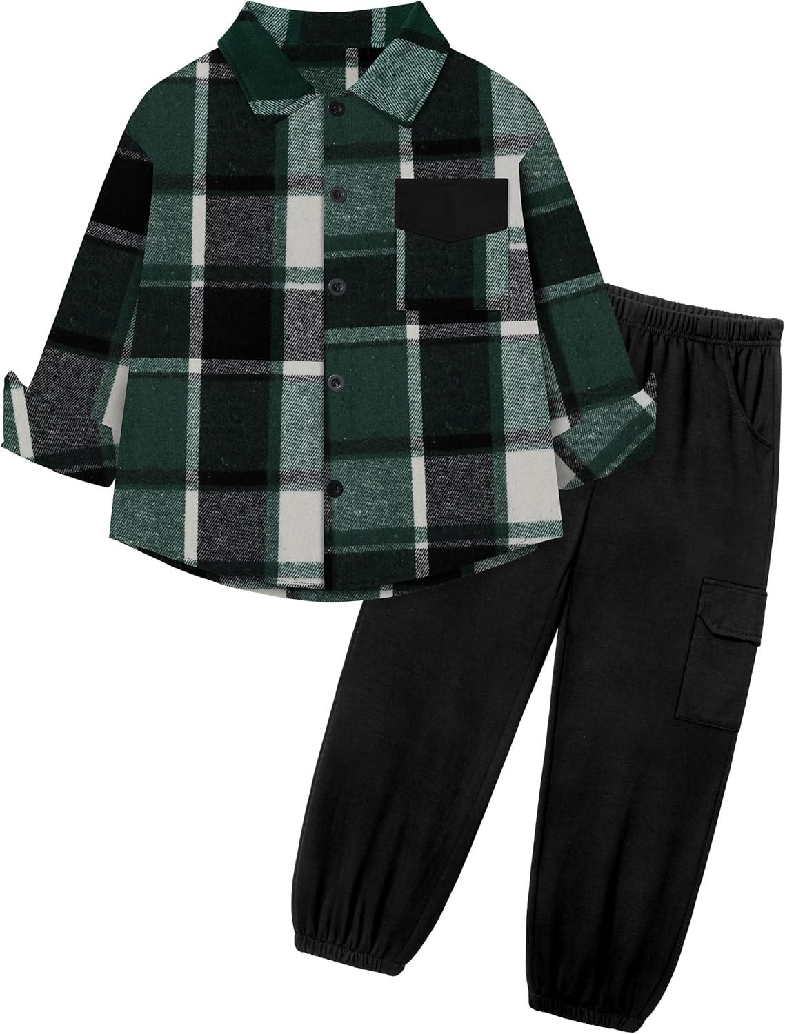Toddler Boys Clothes Long Sleeve Flannel Plaid Button Shirt +Cargo Pants 2 Pcs Fall Winter Kids Outfits Set for 3-8T