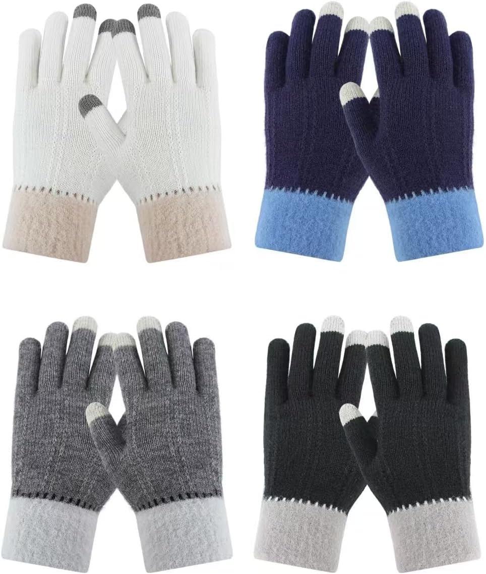 4 Pairs Winter Gloves for Women Cold Weather, Womens Warm Fleece Lined Knit Gloves Winter Touchscreen Texting Gloves