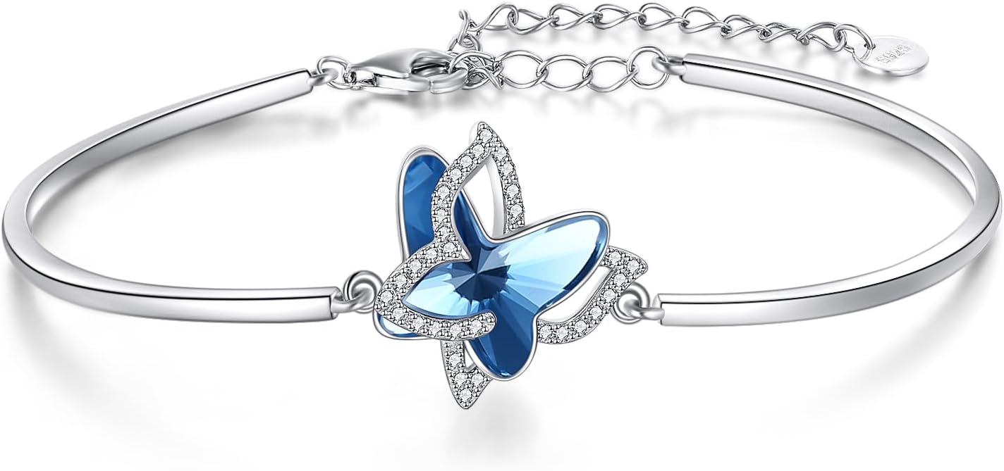 POPLYKE Butterfly/Dolphin/Leaf Bracelet 925 Sterling Silver Crystal Bracelet Jewelery for Women