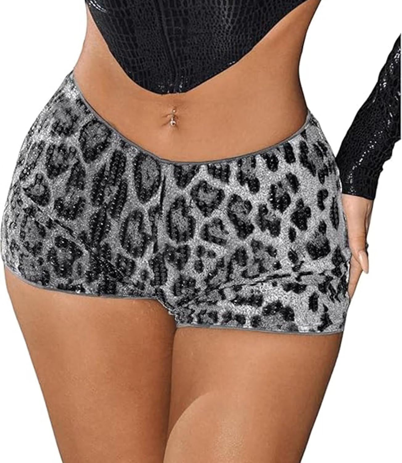Womens Sequin Shorts Y2k Leopard Printed Sexy Rave Dance Micro Hot Pants Clubwear