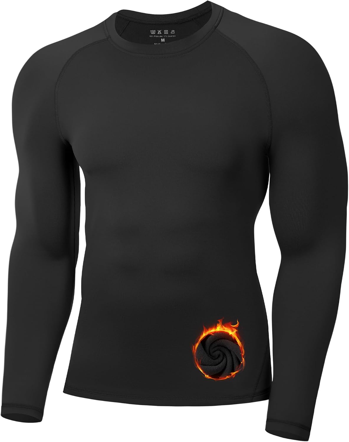 Thermal Compression Shirts for Men Long Sleeve Fleece Lined Base Layer Top Athletic Undershirt Cold Weather Gear