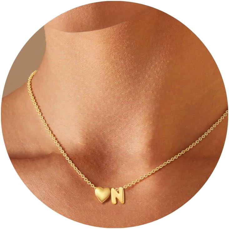 Initial Necklace for Women Teen - 14K Gold Plated A-Z Heart Initial Necklaces for Women Tiny Heart Necklace Jewelry for Wome Birthday Personalized Valentine's Day Gifts Trend Stocking Stuffers for Teen