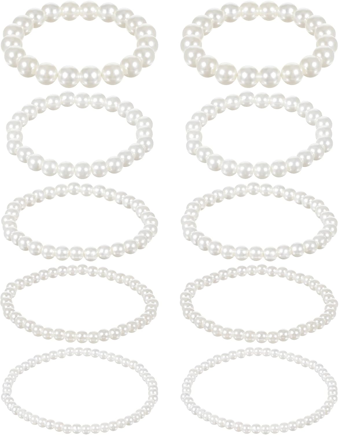 10 PCS Faux Pearl Bracelets for Women White Pearl Bracelets Stackable Bracelet Wedding Elastic Pearls Bracelet for Bridesmaid Wedding Bridal Party