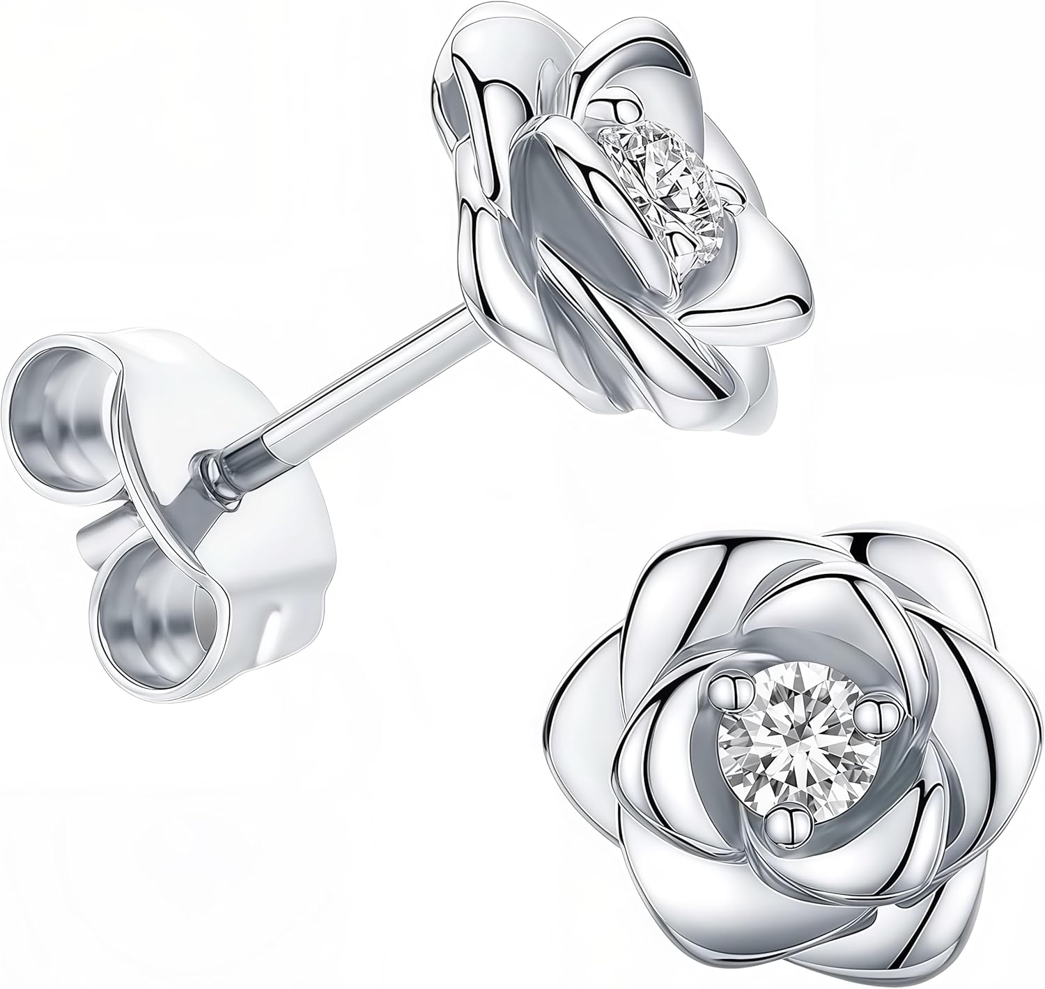 14K Gold Plated Rose Flower Stud Earrings for Women | Hypoallergenic Cubic Zirconia CZ Floral Posts, Nickel-Free